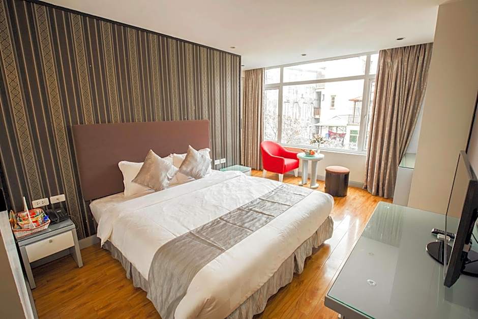 An on-site restaurant serves Vietnamese cuisine in a modern setting, giving dining a convenient twist after a day exploring Hanoi’s sights.